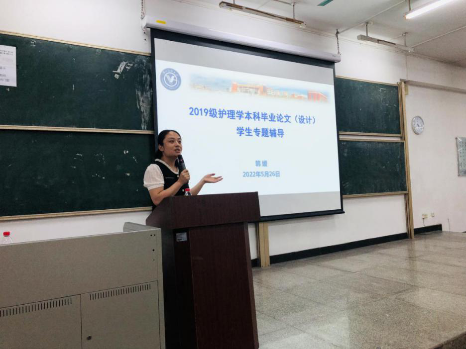 教研办韩媛主任讲解毕业论文总体要求,她强调本科毕业论文是学生本科阶段综合学业成果,要求同学们重视毕业论文工作,积极主动地与指导老师沟通联系,认真做好每环节,确保毕业论文质量。