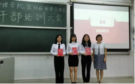 最后,欧丽娅主任和全体干部、干事在图书馆门前合影留念,大会在热烈的气氛中结束了。本次干培以和谐发展为统领,着眼于提高学生干部的综合素质、服务意识和创新意识,增强学生干部的管理能力和工作统筹能力,为护院日后各项活动的有序开展打下了坚实的基础。
