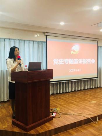 报告会伊始,雷丽琼书记对举办此次学习活动提出要求,她指出通过系列的党史学习教育宣讲,全体党员要达到学史明理、学史增信、学史崇德、学史力行的目的,从而做到学党史、悟思想、办实事、开新局,教工党员要将理论学习与实际工作相结合,不断提高服务意识与立德树人的能力,学生党员要坚定自信,厚值爱国爱党情怀,增强使命感。