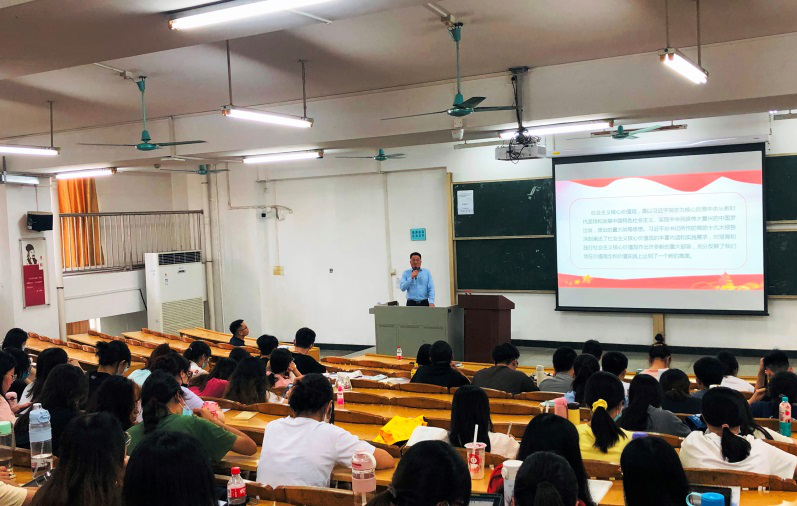 首先,黄健清副校长结合自身成长的经历,融入道德教育,指导同学们树立正确的价值观,鼓励同学们要强化社会公德、职业道德、家庭美德和个人品德建设,要在知行合一上下功夫,不断将社会主义核心价值观内化为精神追求,外化为自觉行动。