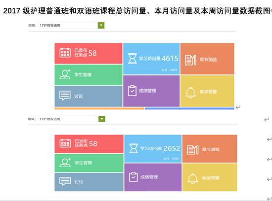 《皮肤性病护理学》授课对象包括广州医科大学护理专业学生94人;疫情期间也可供广大临床医学专业、护理学专业、临床医生、护理人员在线学习。开课3周以来,课程总访问量达7267次,本月访问量达5689次,本周访问量达1948次。学生学习积极性高,通过qq群、学习通等多种工具参与在线授课活动,已发布任务点58个、案例分析讨论话题14个、参与讨论783人/次;发布中文课前、课后测试13次、英文测试题1次,参与学生比例超过90%。