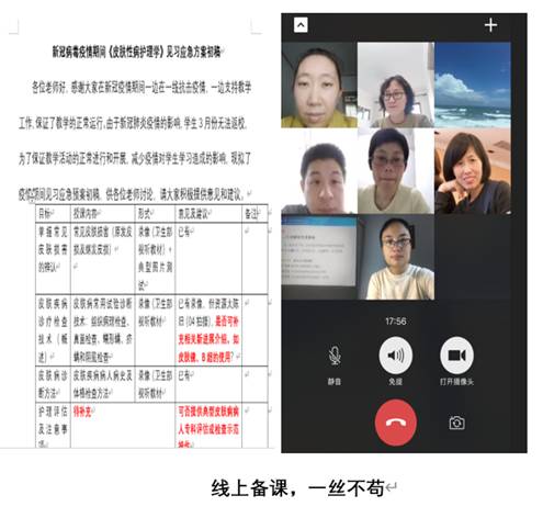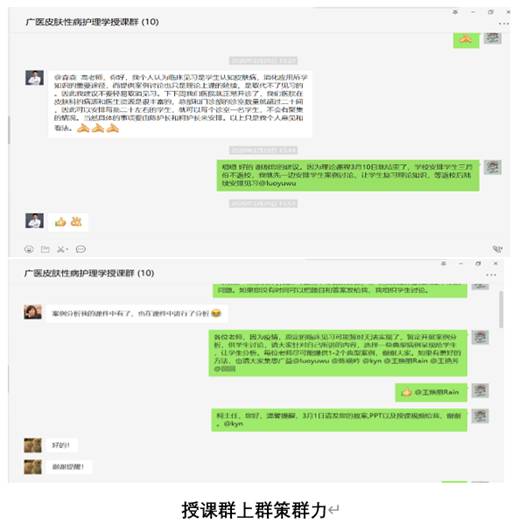 新冠肺炎疫情以来,《皮肤性病护理学》教学团队紧密团结,迅速反应,集结广州医科大学及广州市皮肤病防治研究所的主任医师、主任护师多名一线专家,制定教学应急方案,引用国内外优质课程资源、挖掘临床典型案例、自制见习操作视频、打造优质慕课资源,充分课前准备、特色课堂教学、丰富资源课后拓展,师生同行,共同打响教学“抗疫” 阻击战。