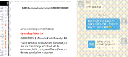 授课团队充分利用疫情期间免费开放的国内外优质学习资源,为学生提供中国大学慕课,爱课程、coursera平台的链接、国内外皮肤病诊疗护理指南、图书、文献资料,充分拓展学生思维。