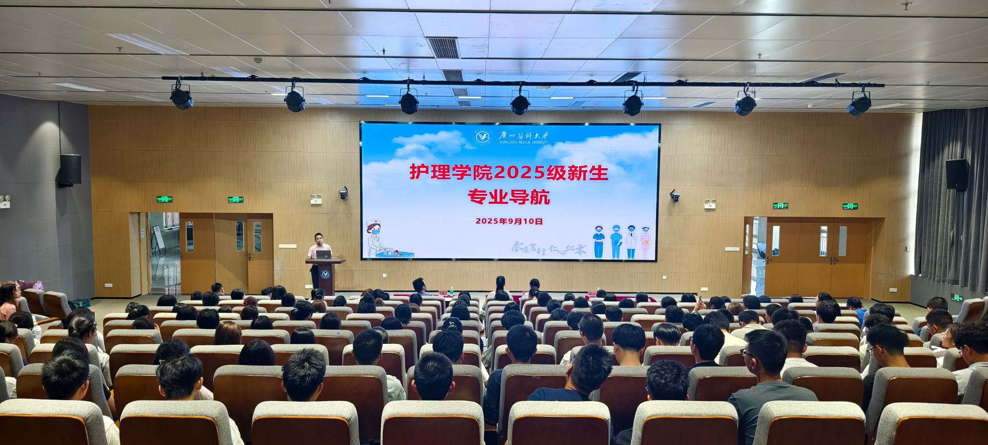 领导廖晓艳院长、唐敏仪副书记,教师代表叶增杰教授、陈云主任护师,辅导员、兼职班主任及2025级全体护理学本科专业新生参加此次活动。