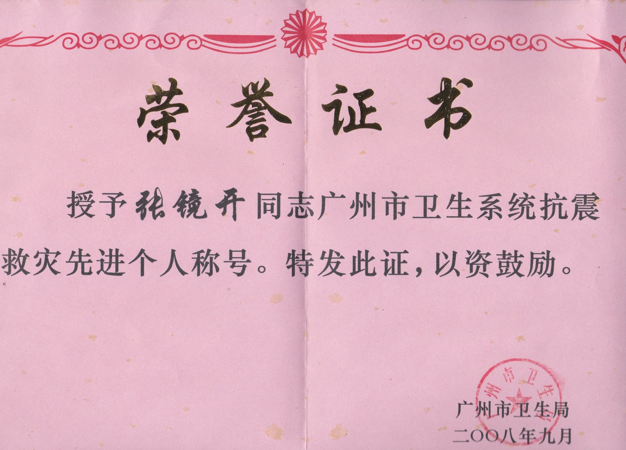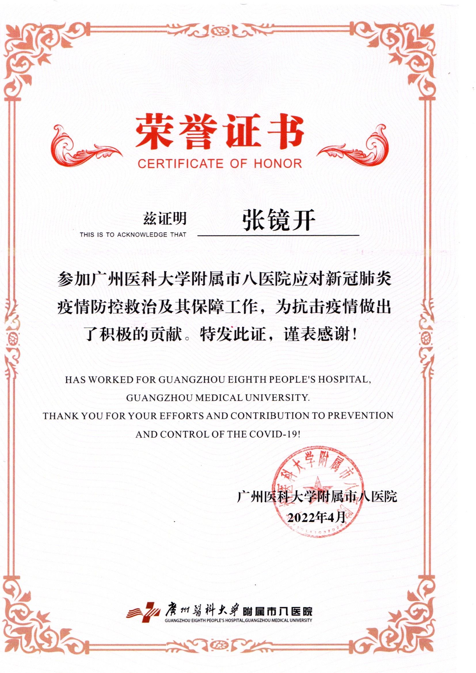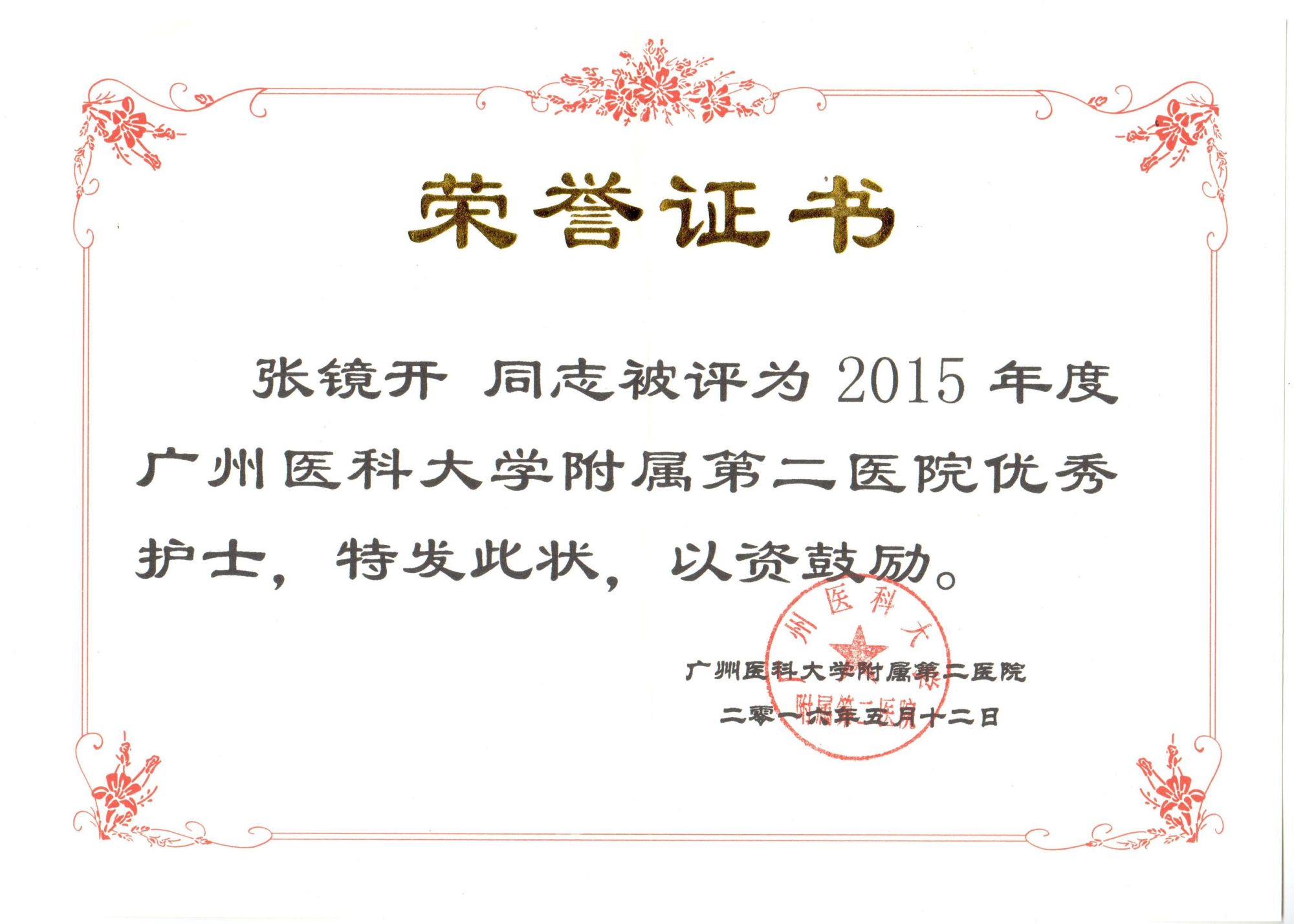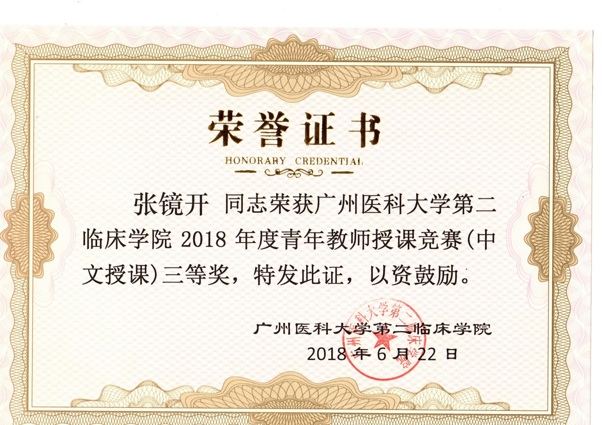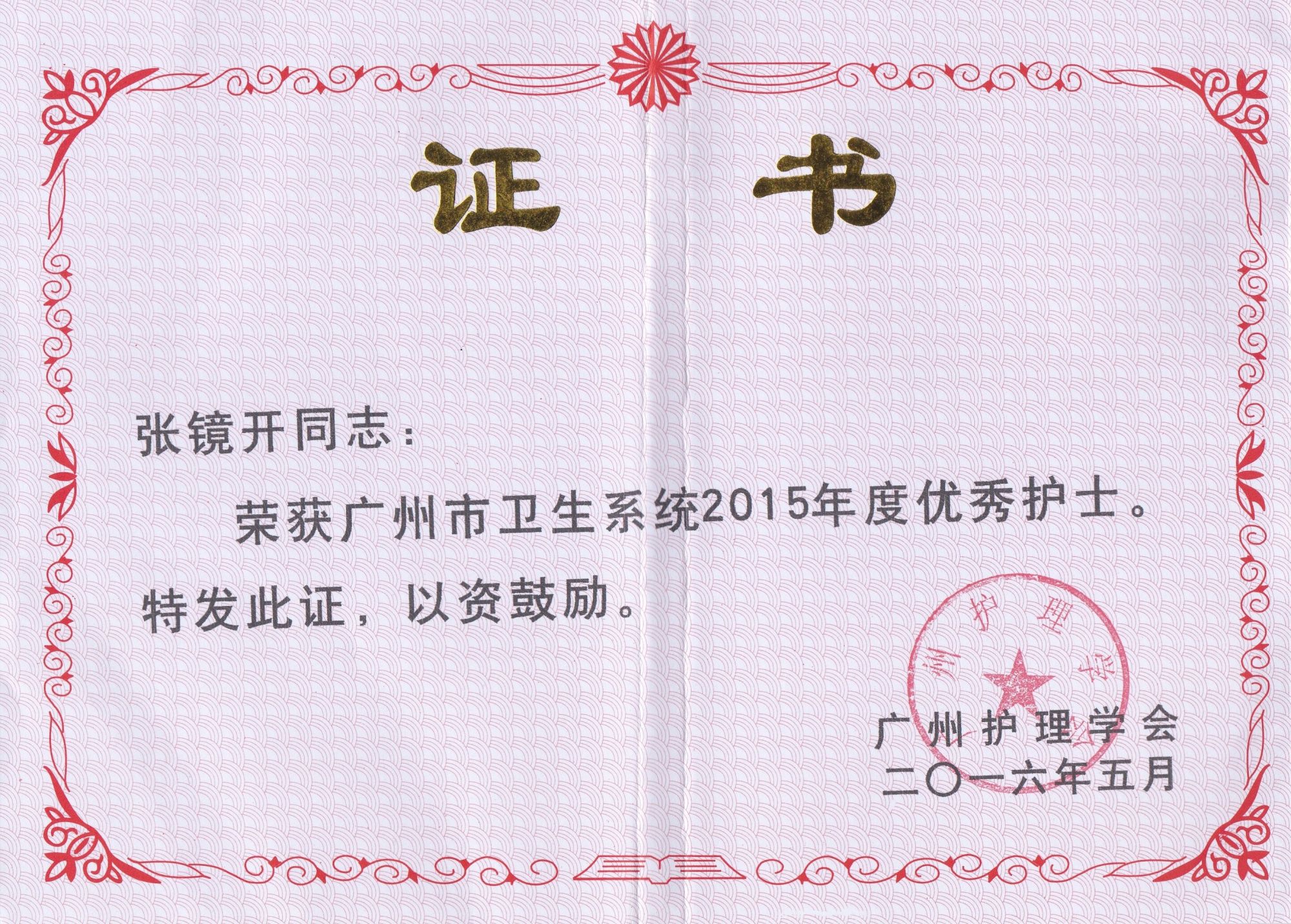 在校学生等各层次护理人员进行带教和授课,教学效果得到了各方的肯定,期间制作人卫慕课及参与授课比赛并获奖。出色的工作得到了肯定,张镜开曾获国家级的急诊医疗改善奖,广州市优秀护士称号、2次获得病区护理质量奖,3次获得医院优秀护士称号。